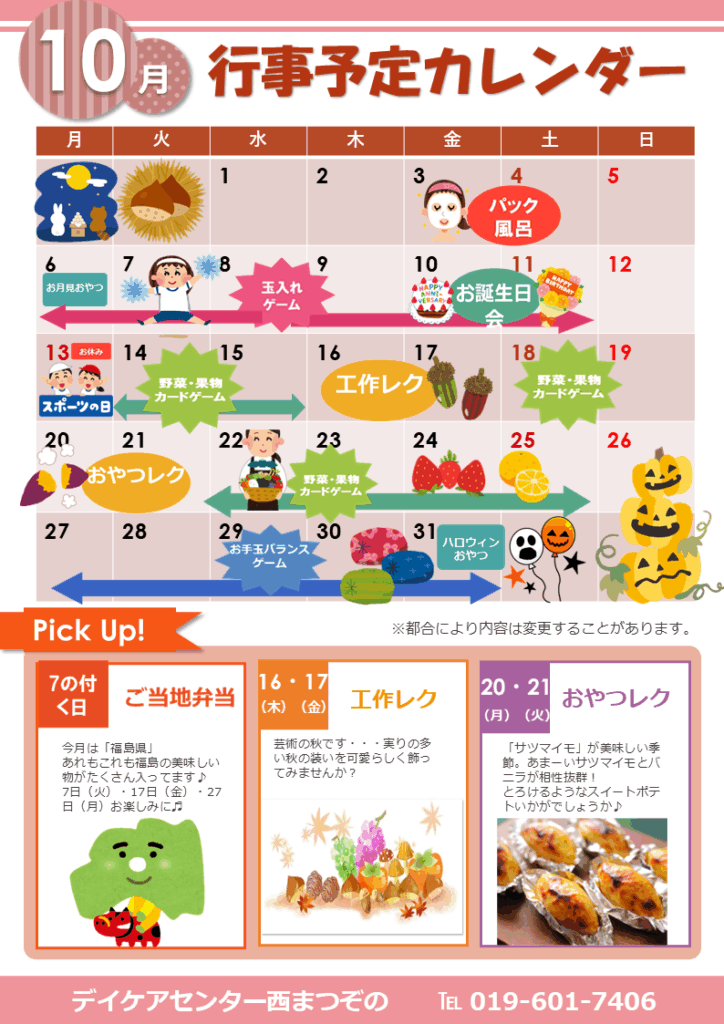 体操やゲーム、創作活動を通して楽しみながら身体と脳を刺激し心身共にリフレッシュ。イベントも随時実施します。